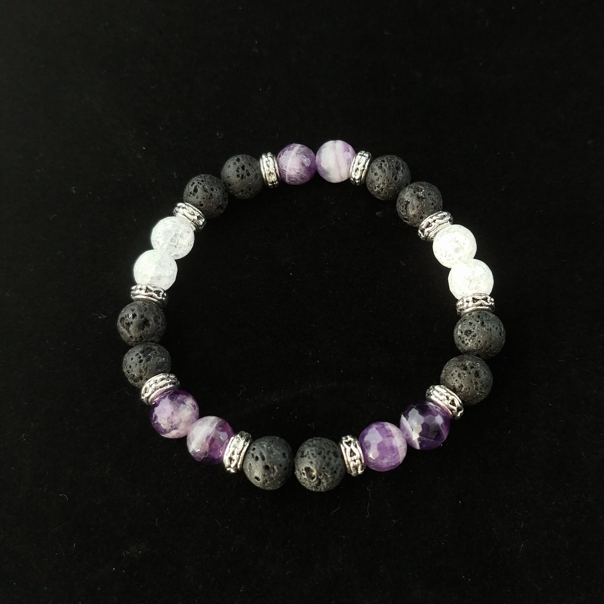 Amethyst Stone and Crystal Ice Beads Bracelet