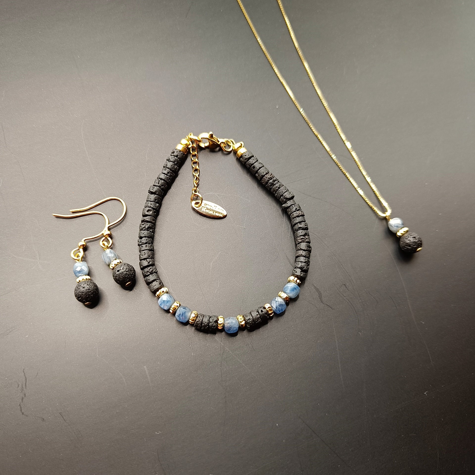 Devil Blue Aquamarine and Lava Rock Jewelry set.