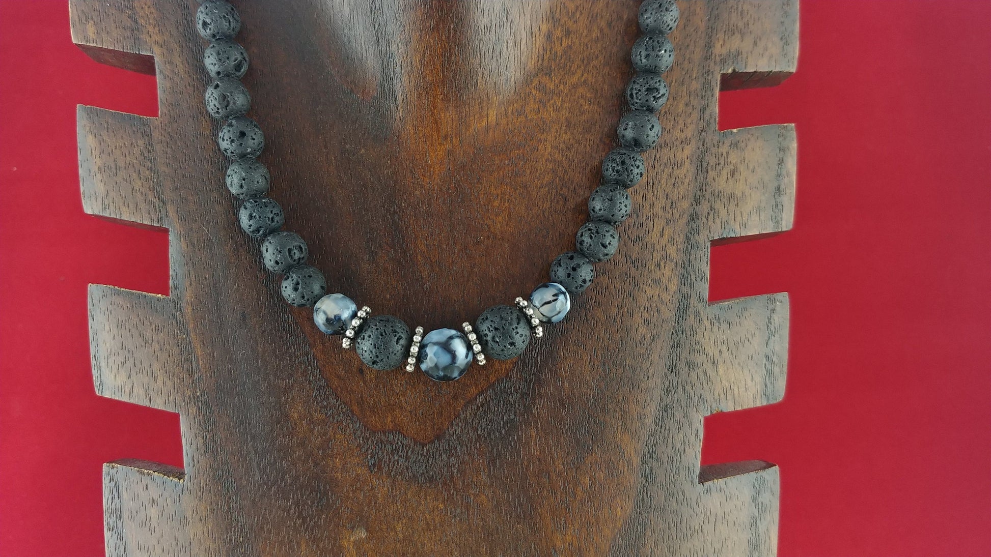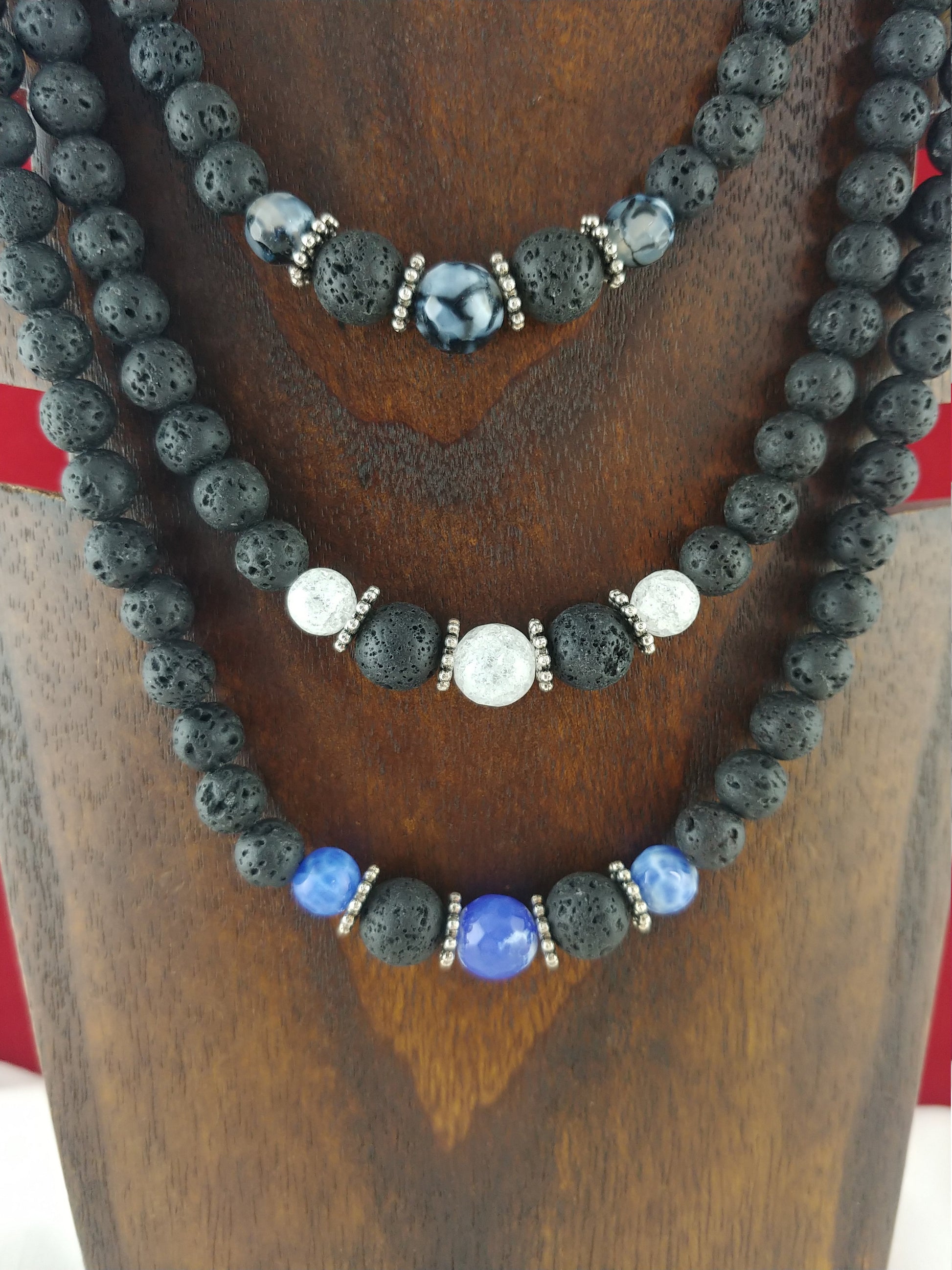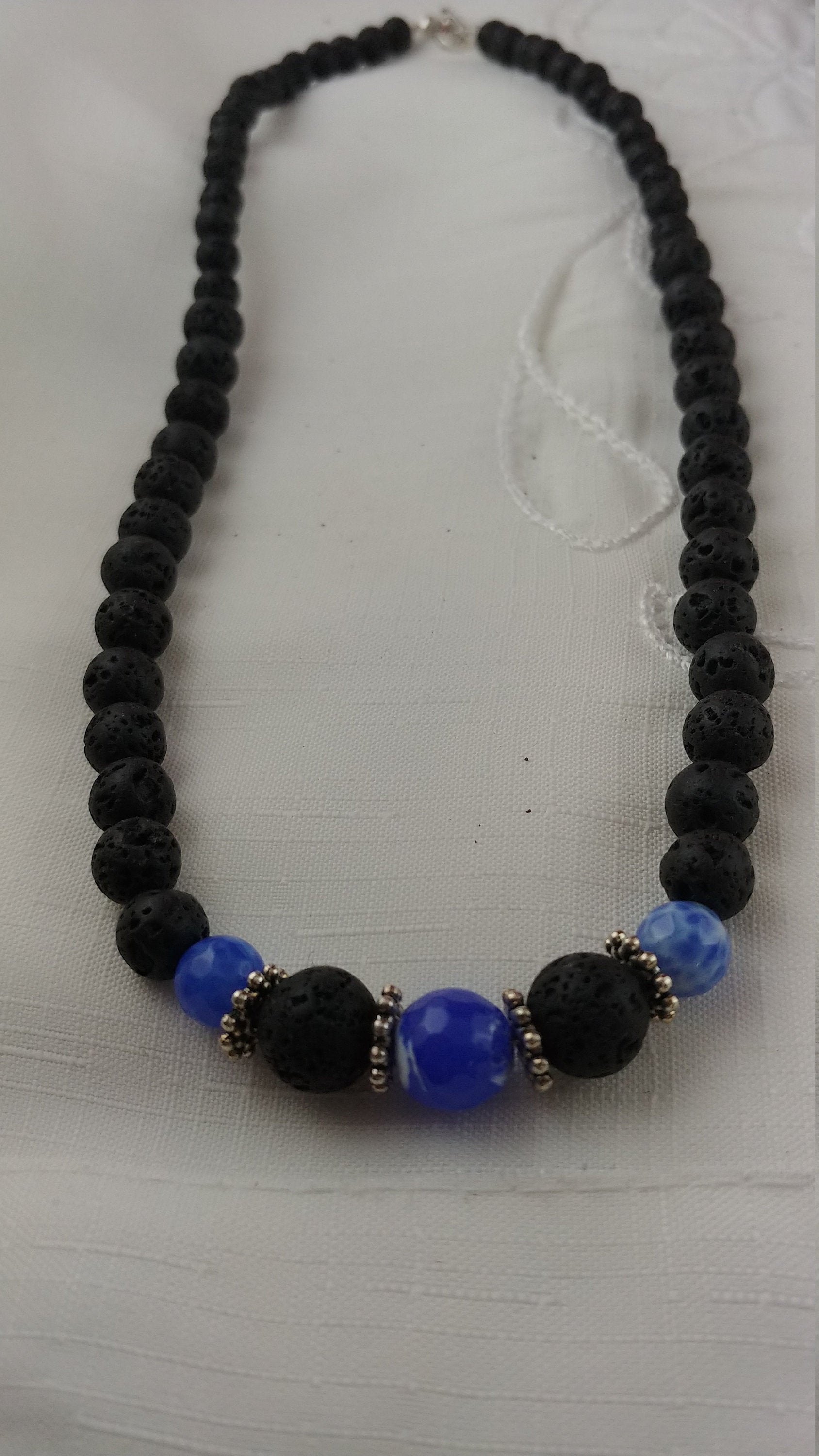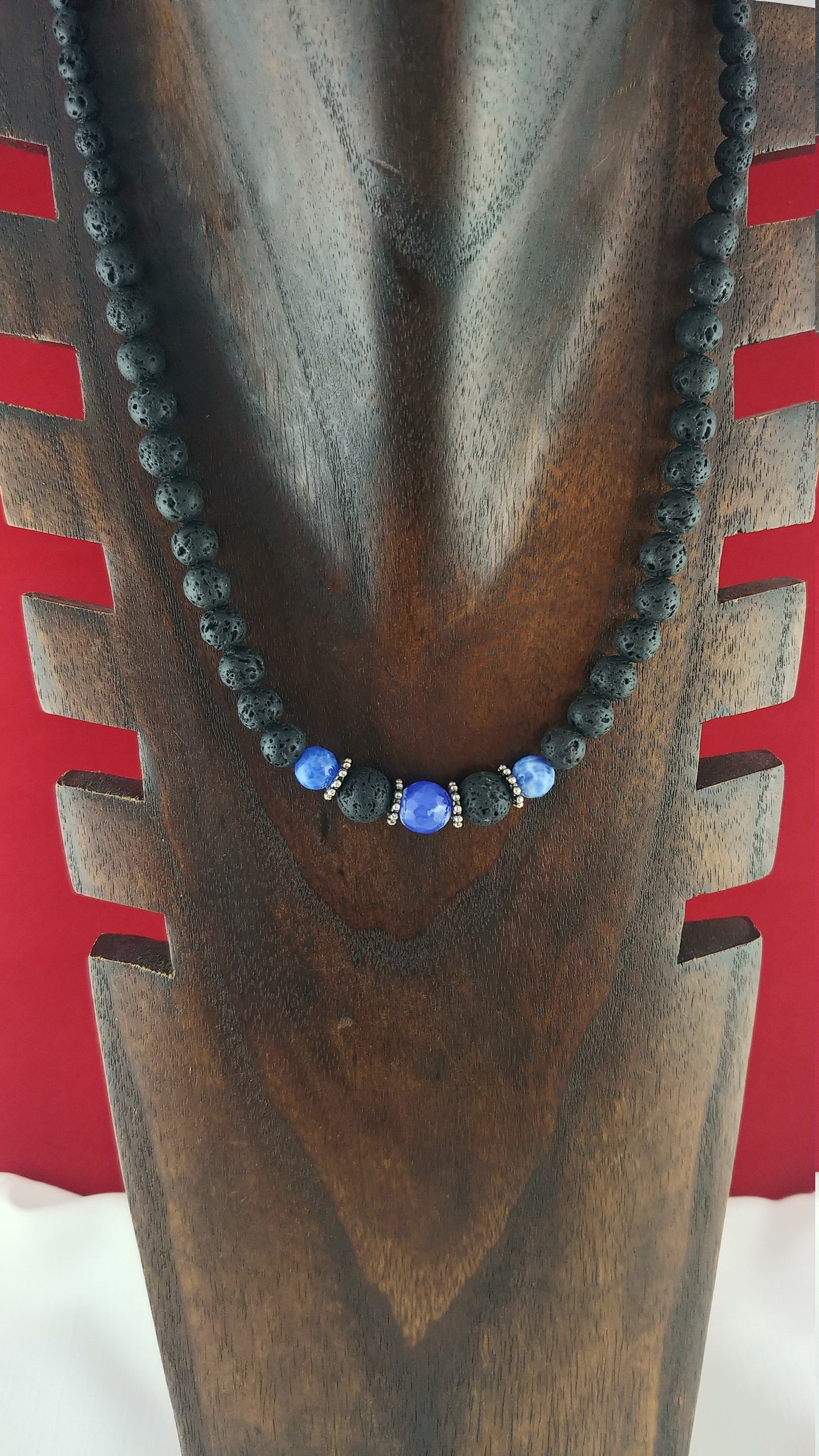 This beaded necklace is a new item that I really love making. Having the larger stones in the middle really gives the necklace depth and this works great with dark dresses and dark clothing. *6-10mm lava stones