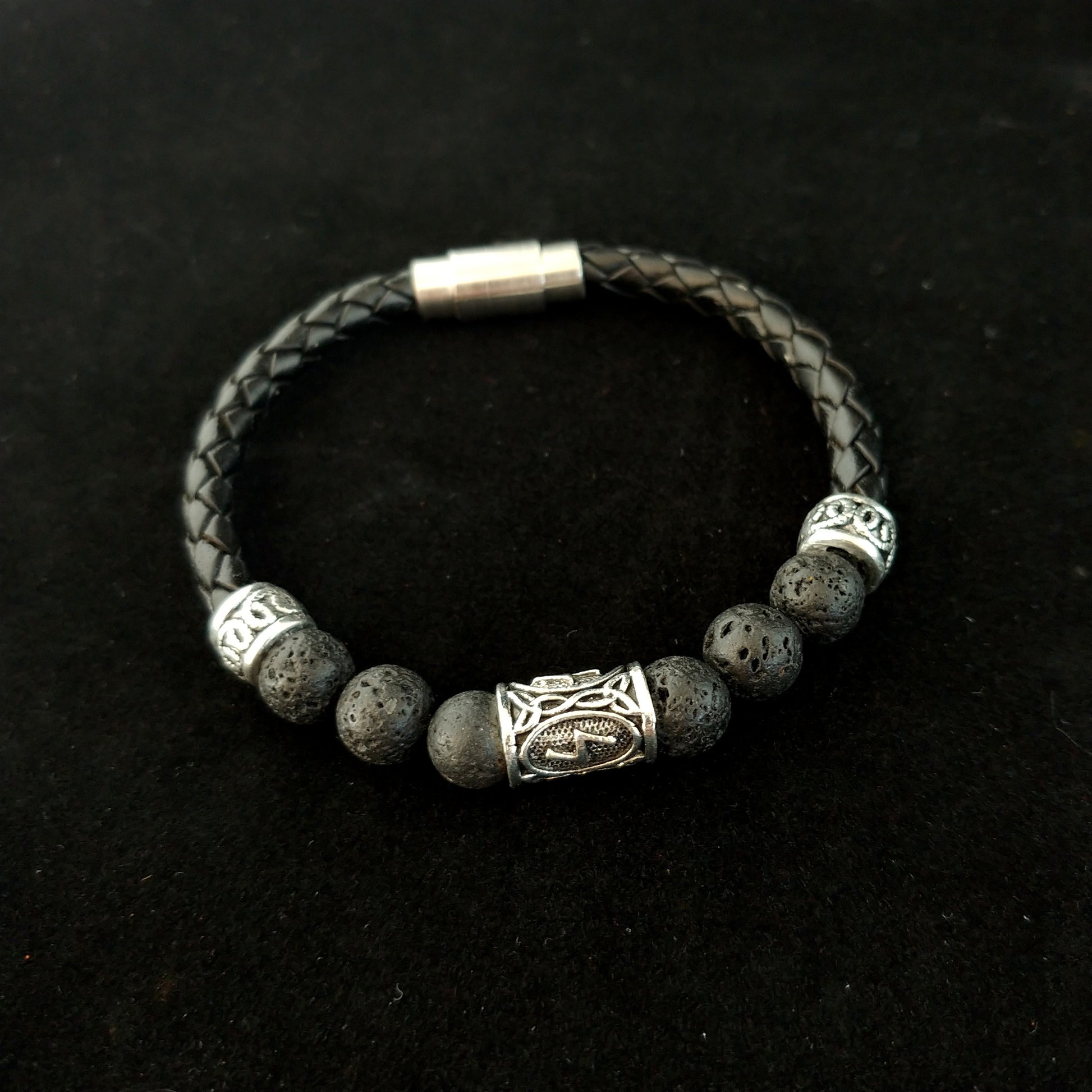 Icelandic Braided Leather Runes Lava Bracelet - Runic Viking Jewelry