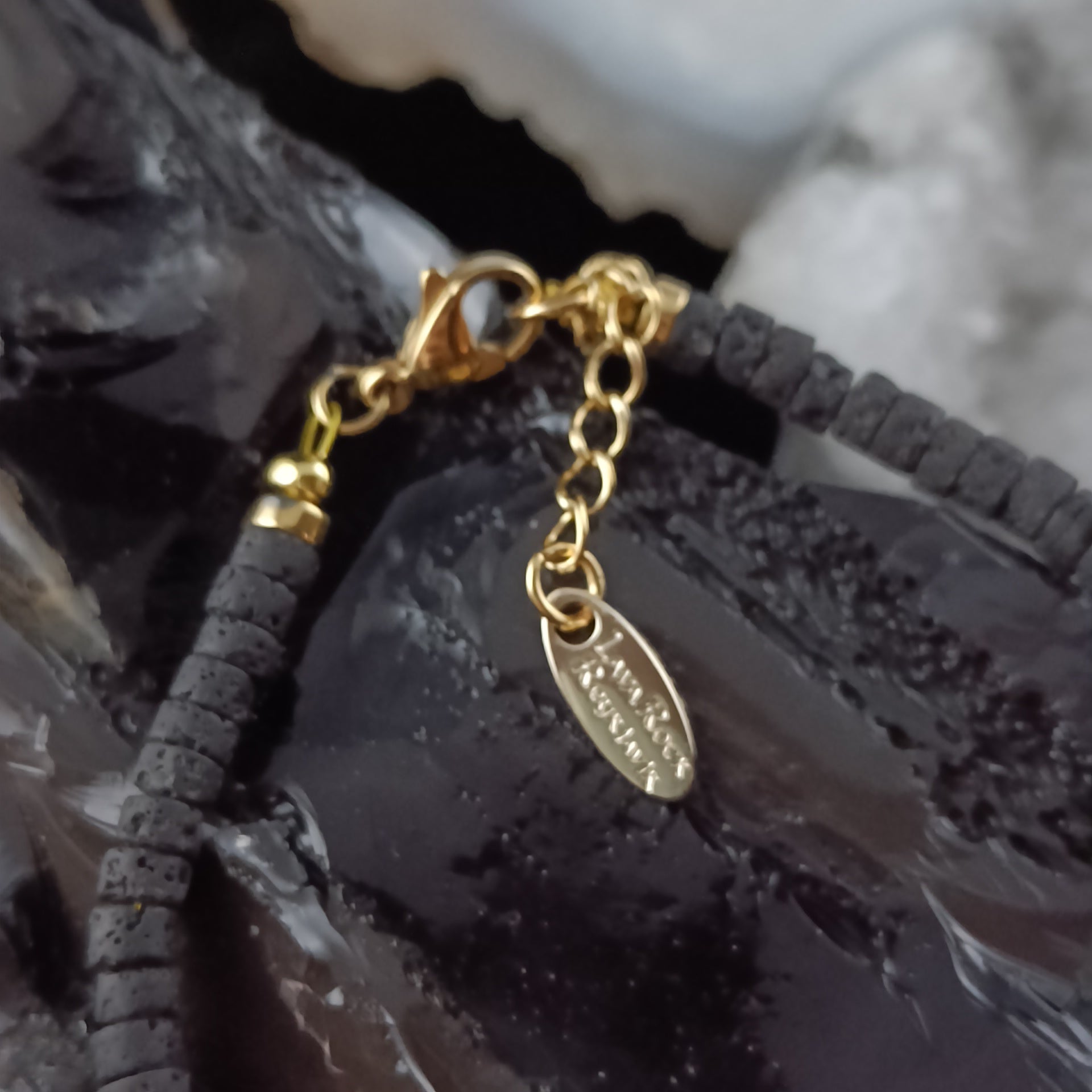 Bracelet with thin cut Lava Rocks with 18k Gold plated Copper.