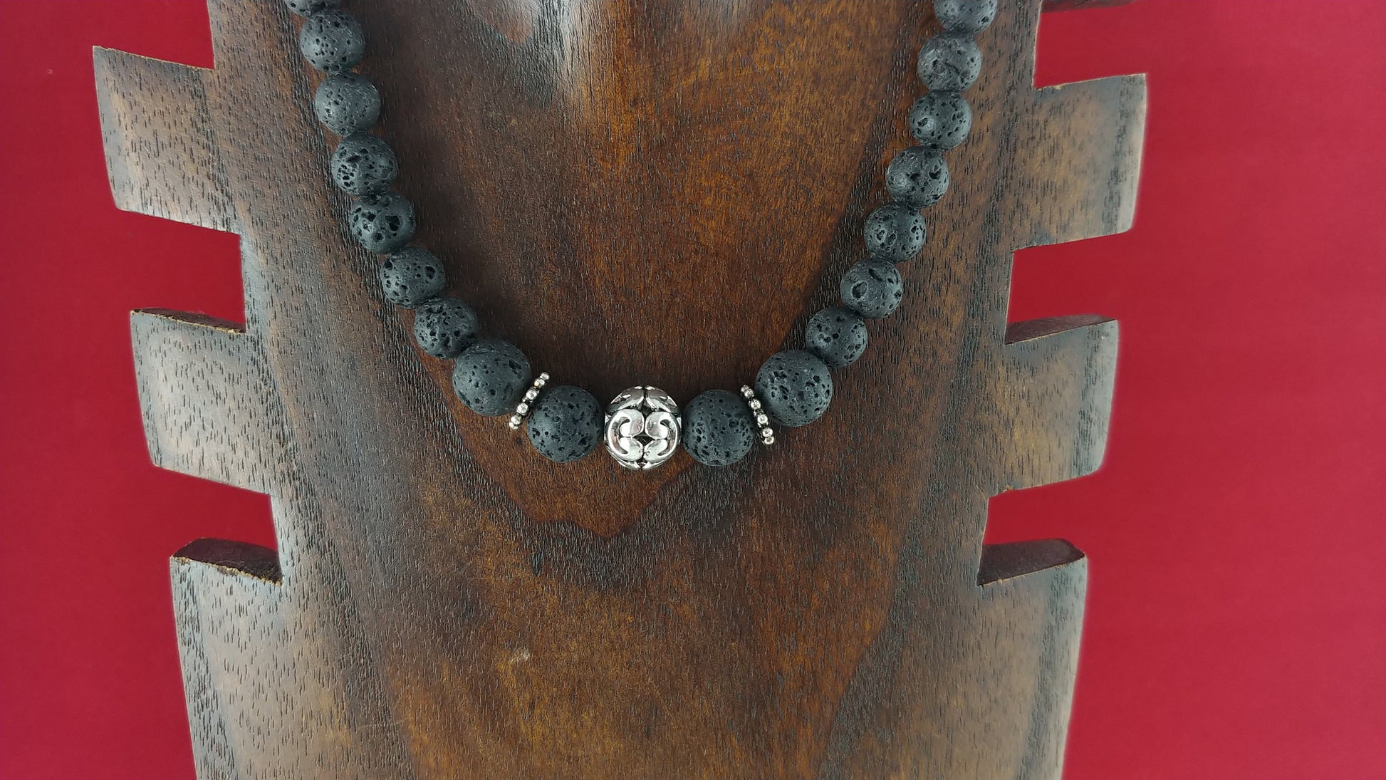 Lava Stone Necklace with Tibetan Silver Charm