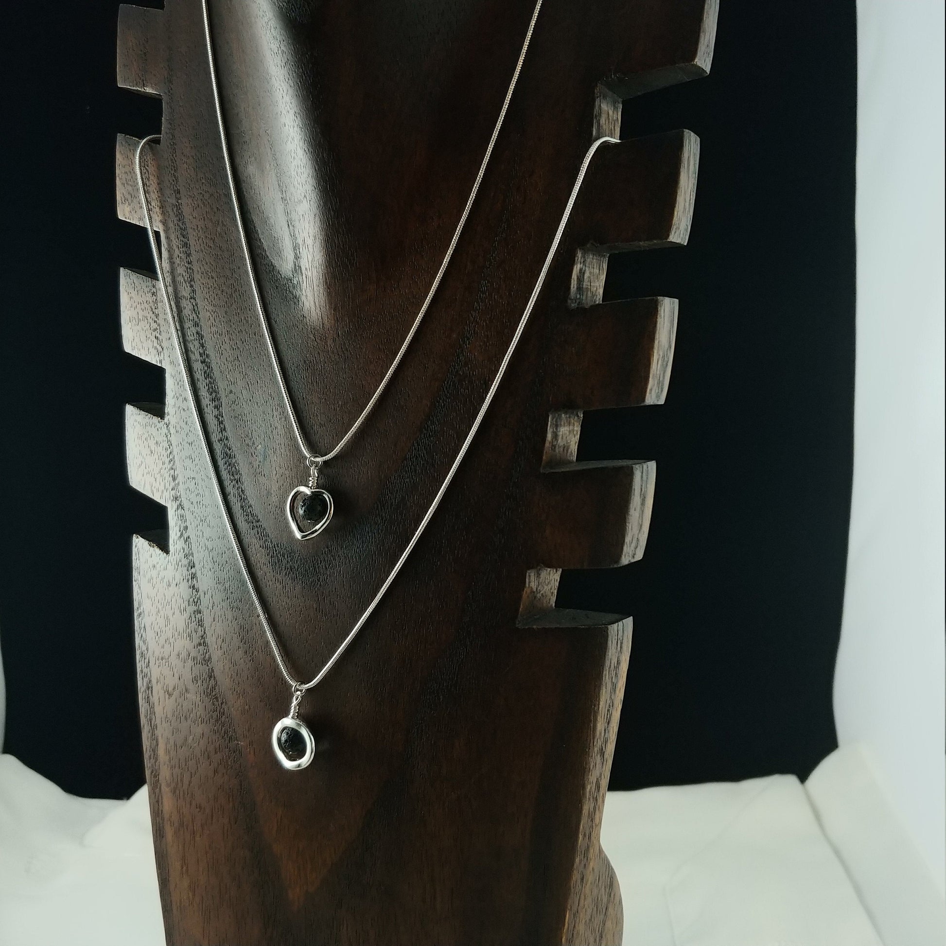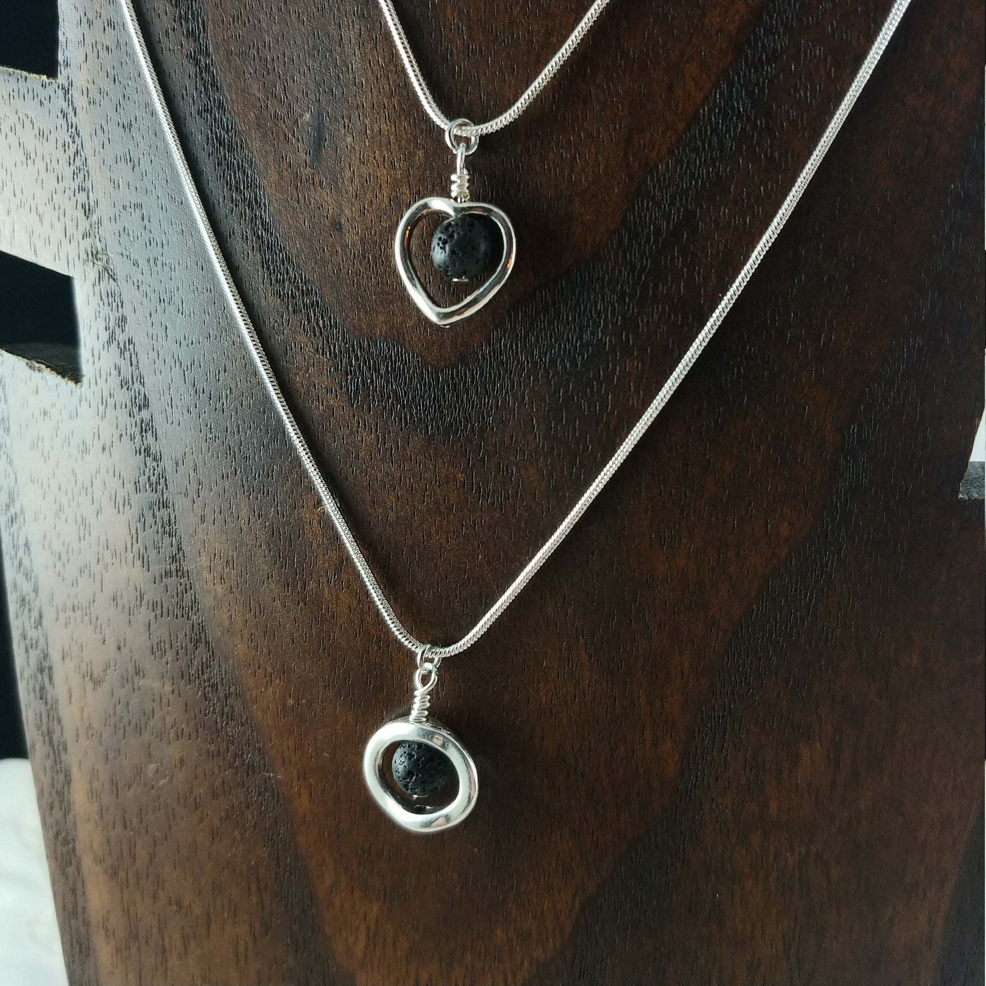 Small Lava Stone Necklace - 2 types: Heart shape and Circle shape - 6mm Lava Stone