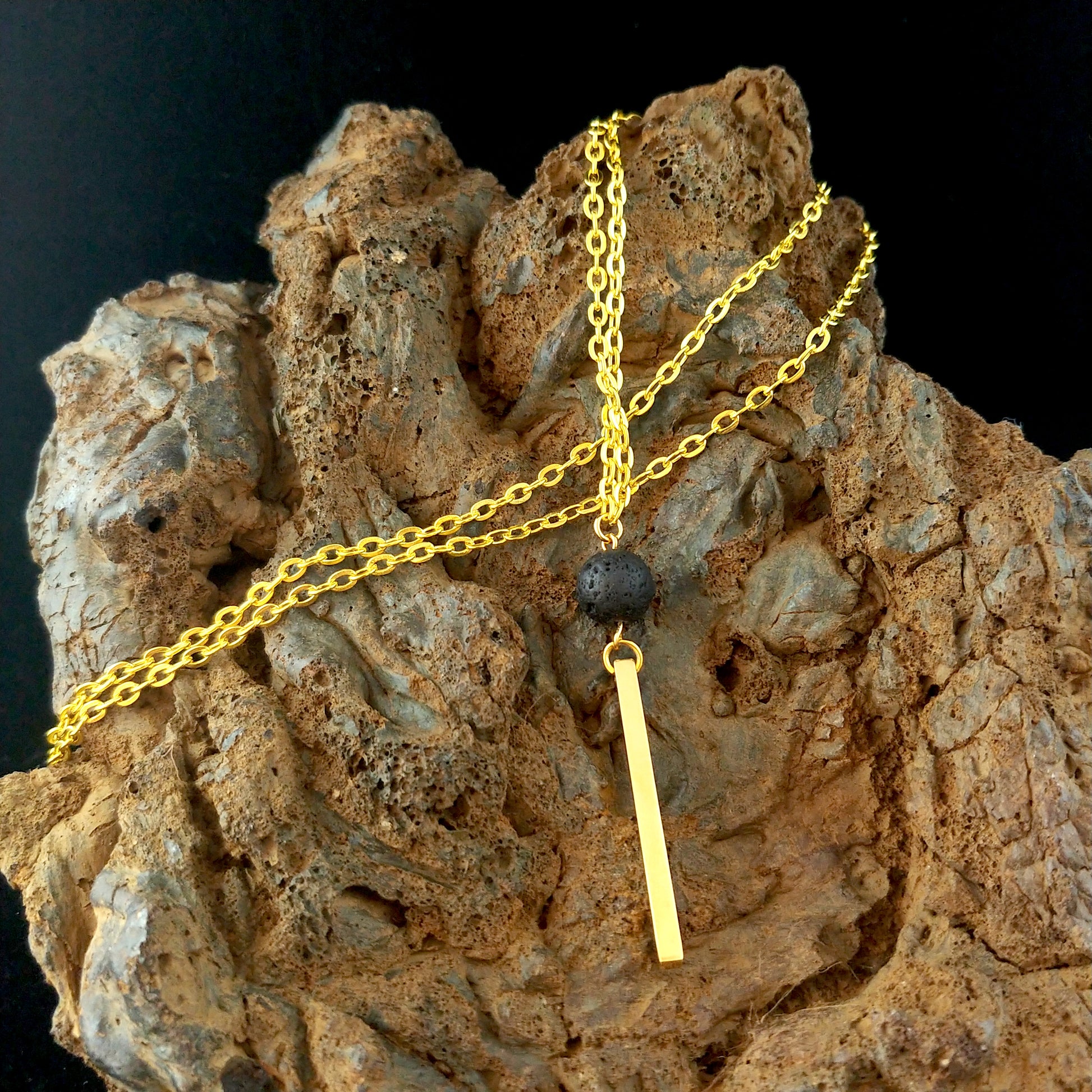 The Lava and Golden Bar Jewelry Set - Set of Earrings and Necklace with Golden Stainless Steel Bar and Lava - Monolith Series - Iceland