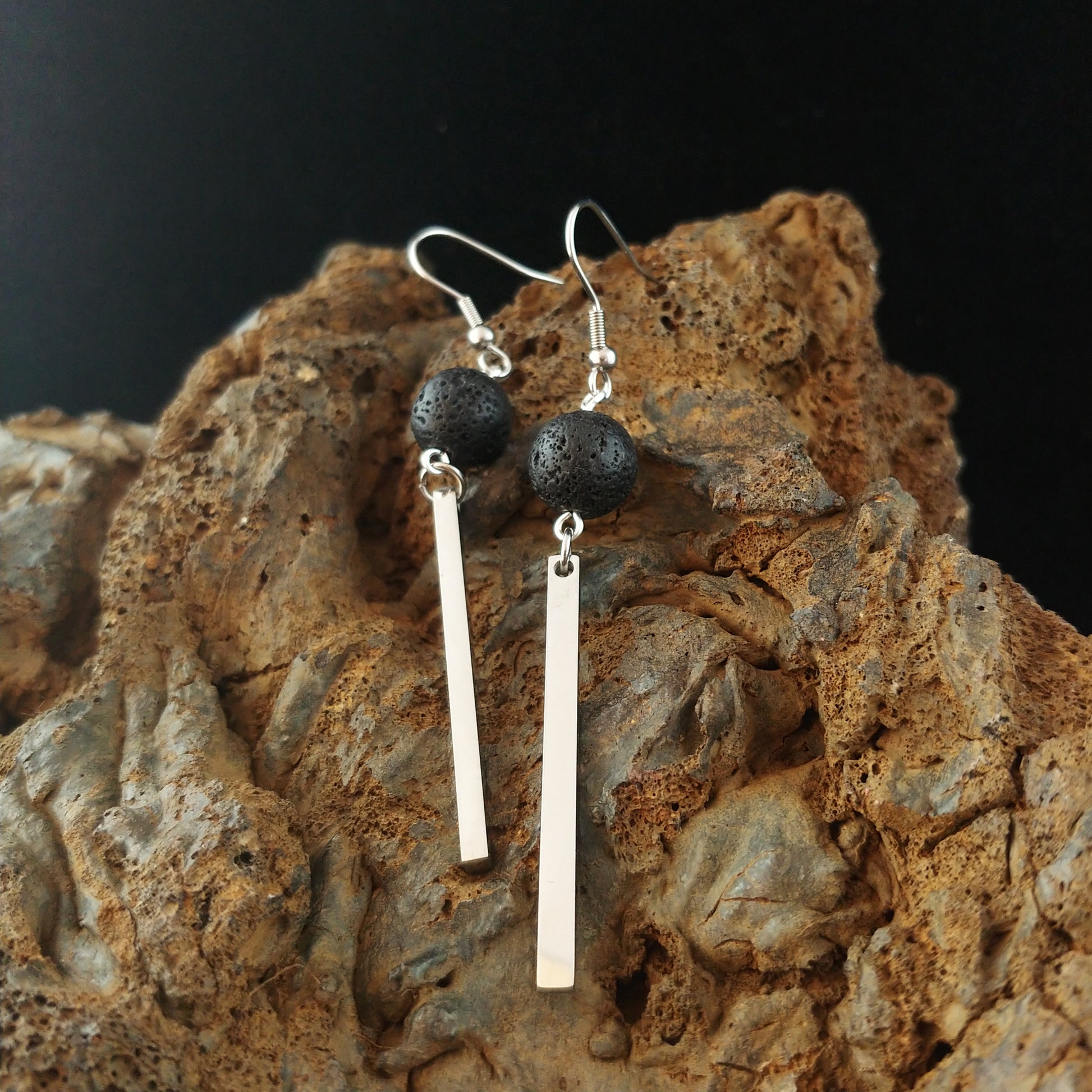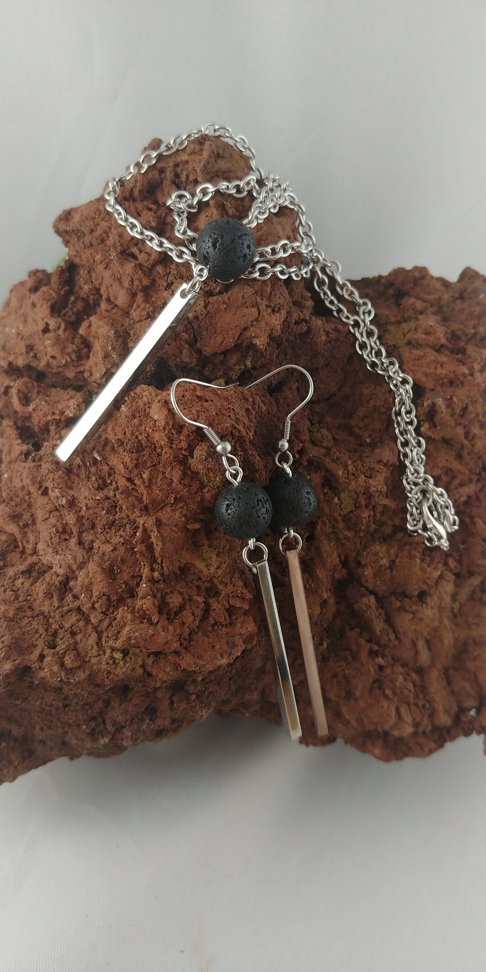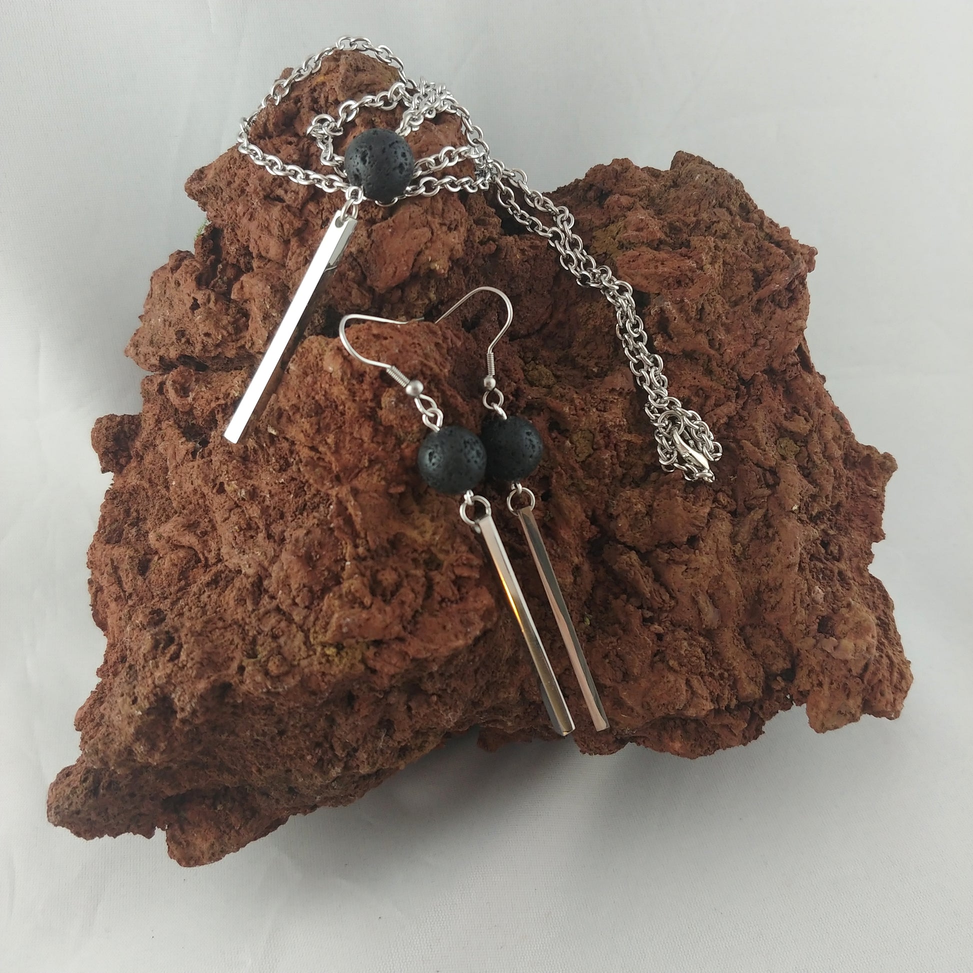 The Lava and Silver Bar Jewelry Set - Set of Earrings and Necklace with Silver Steel Bar and Lava - The Monolith Series - Iceland