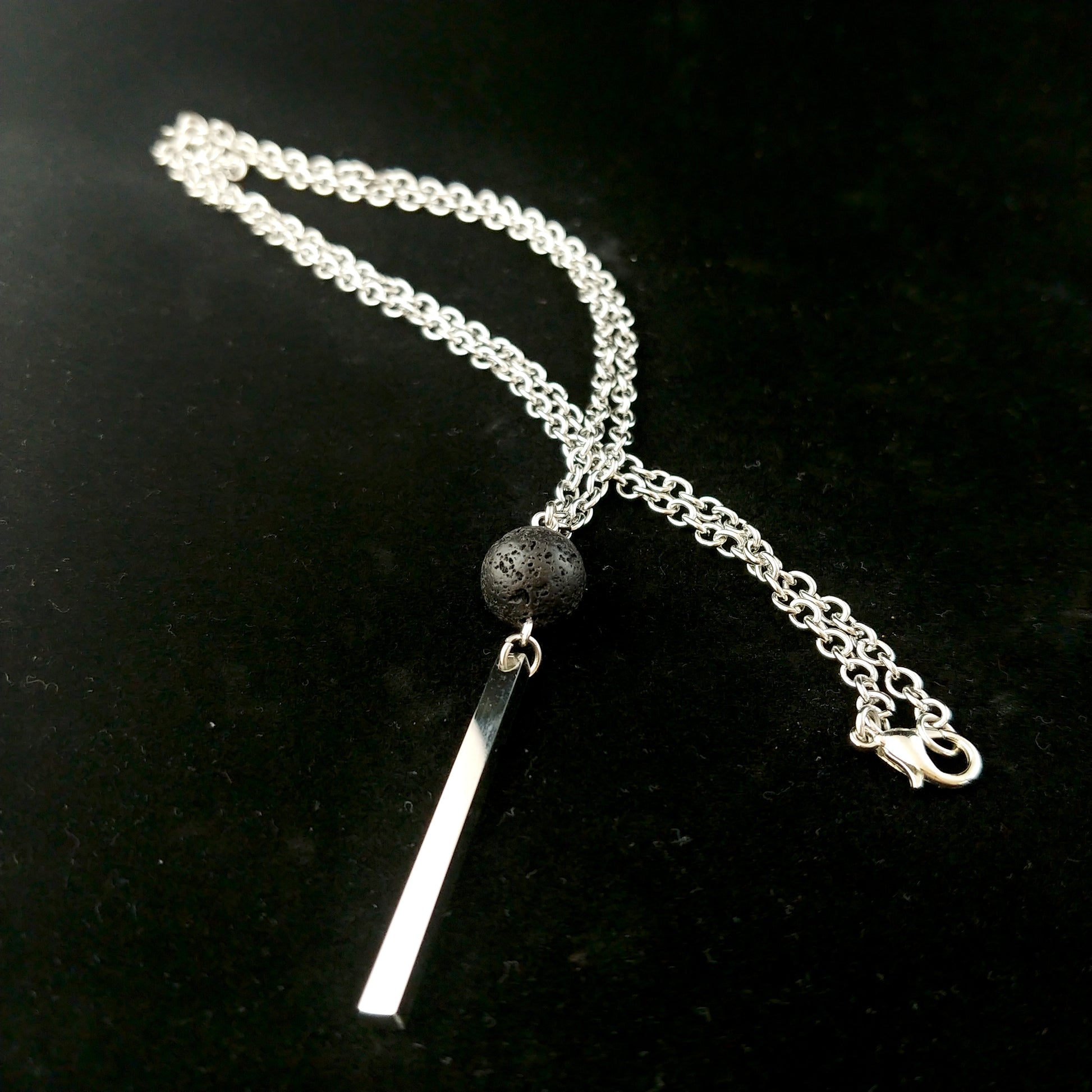 A set of Steel Silver bar jewelry with 10 mm lava stones.