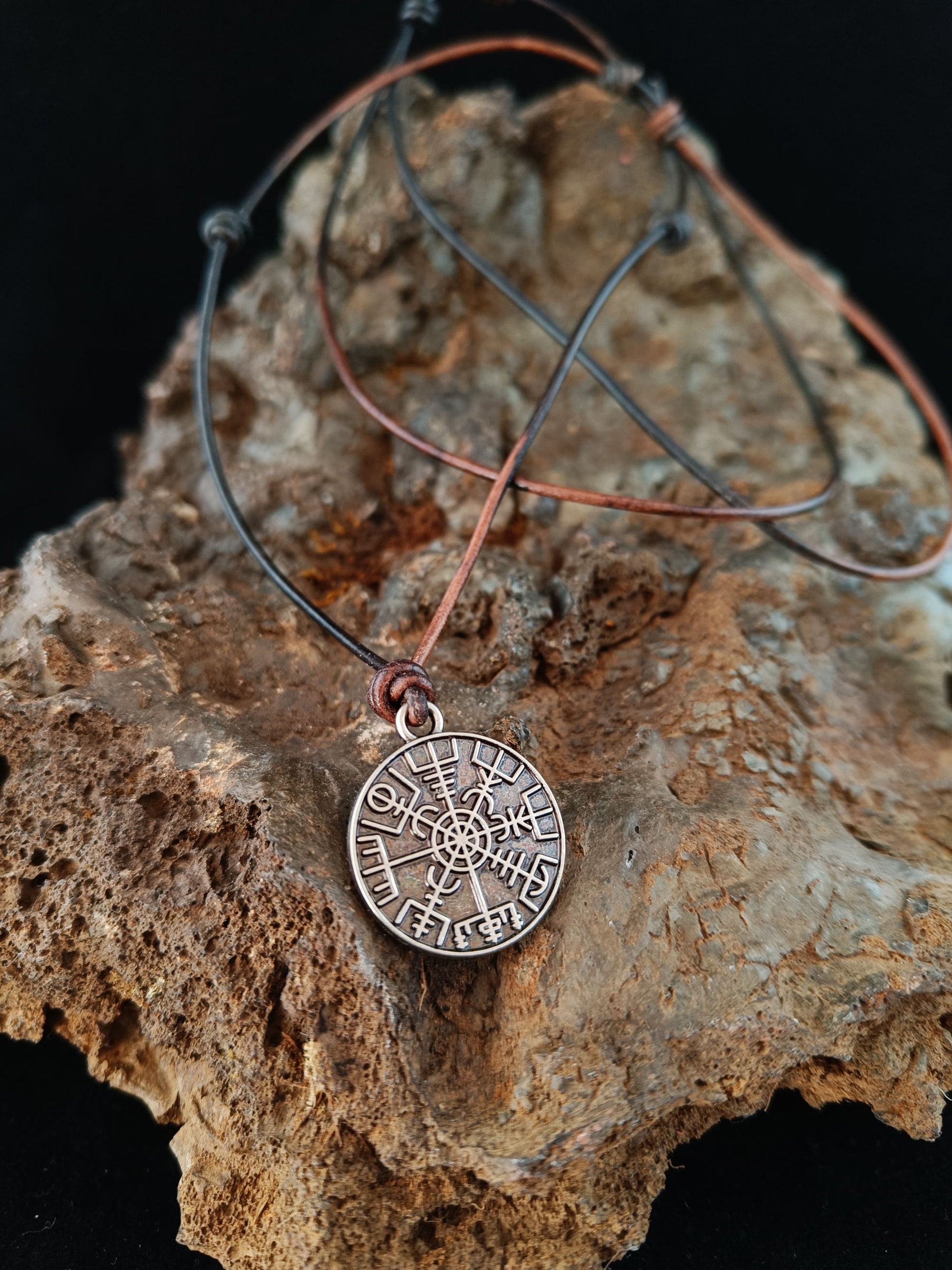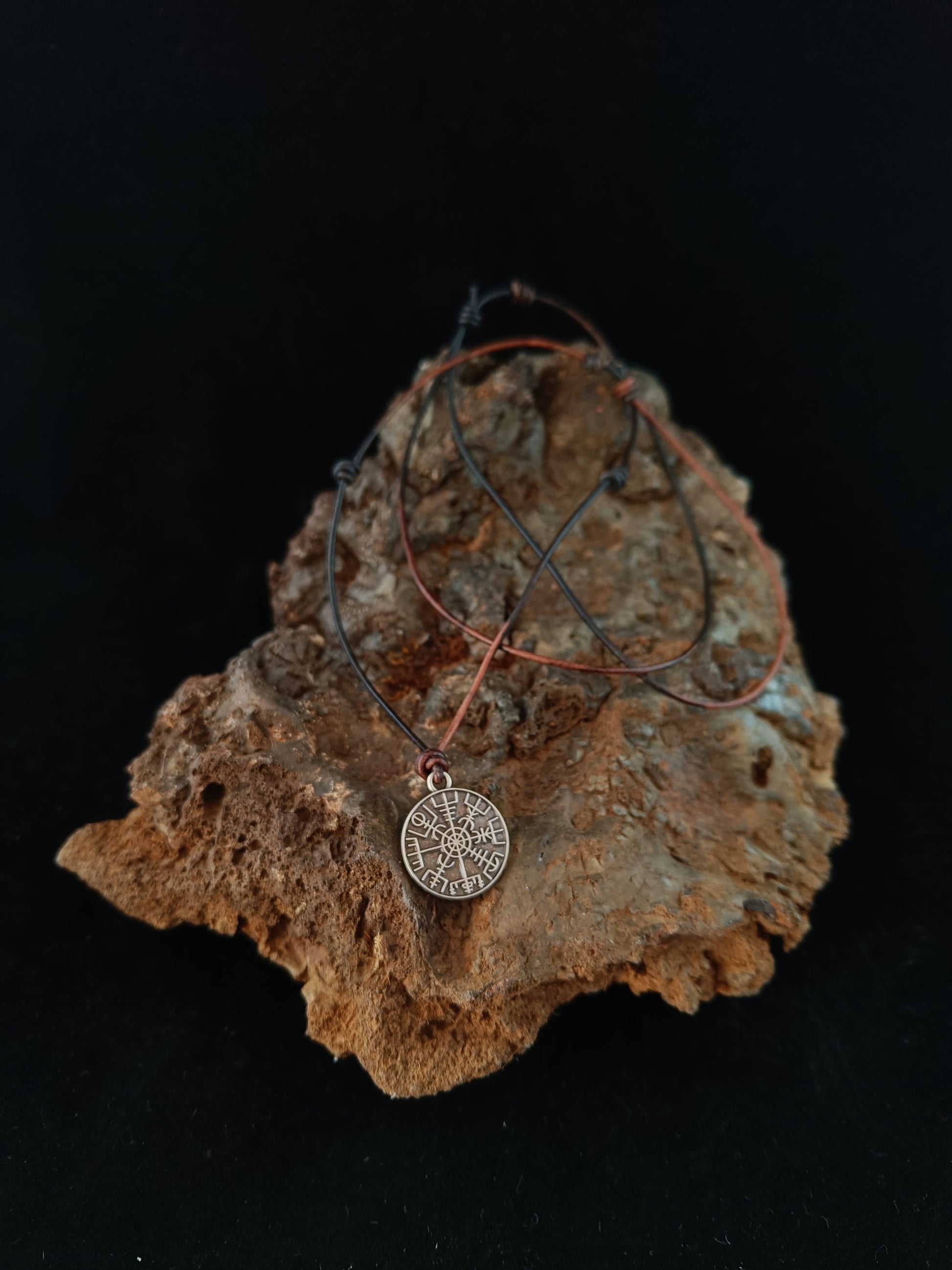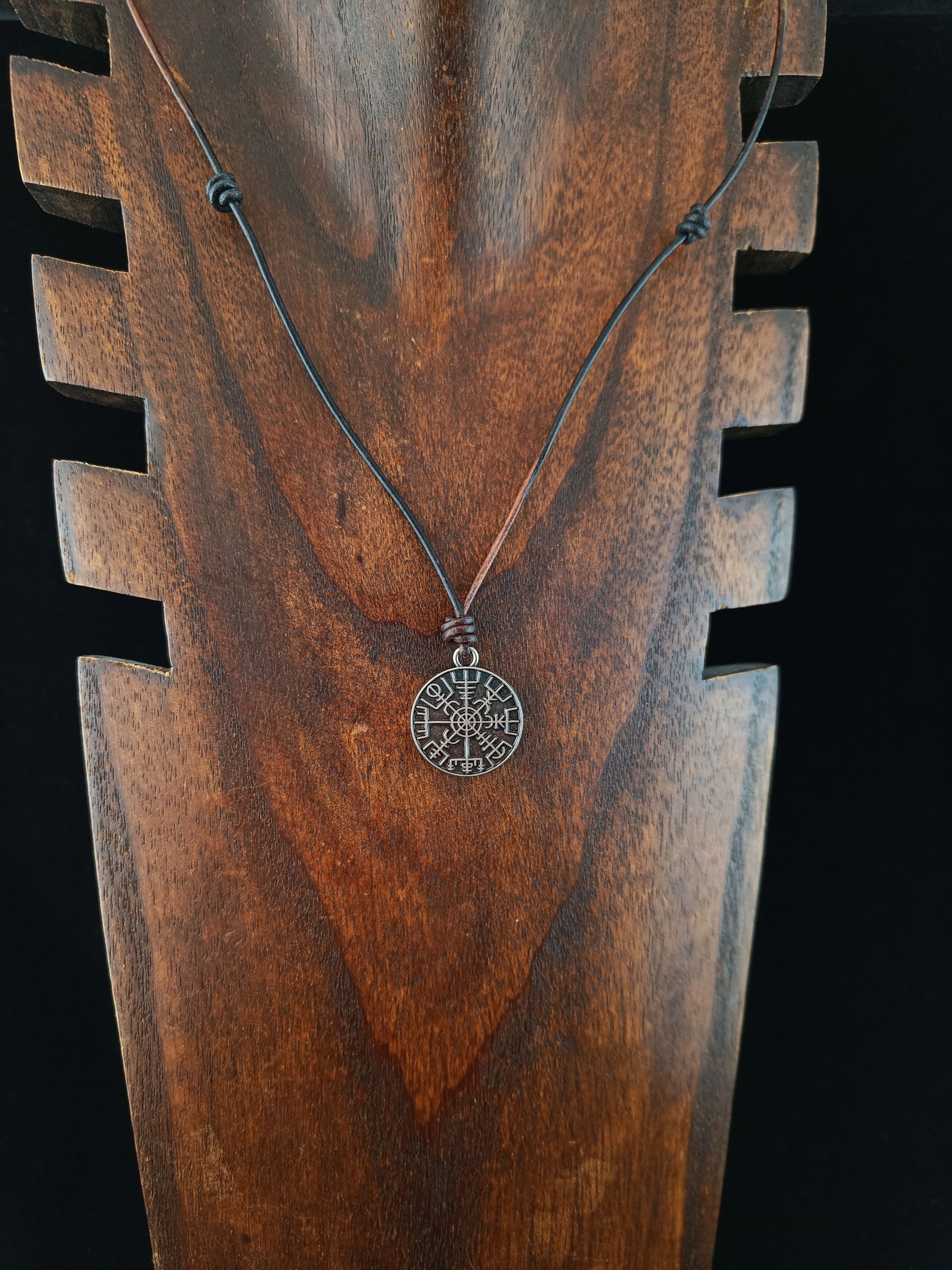 Vegvísir leather necklace with Steel Vegvísir pendant.